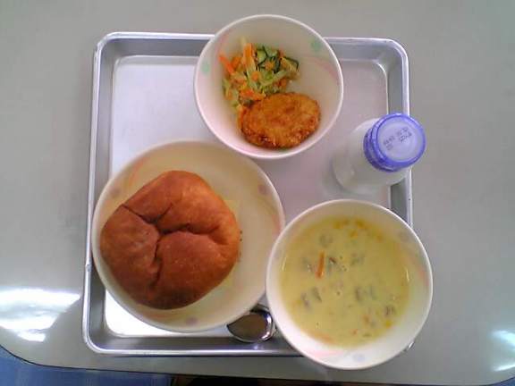 コーンスープ ハートコロッケ クロスロールパン チョコタルト |
