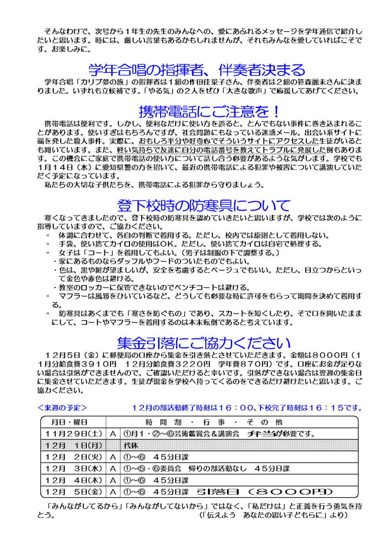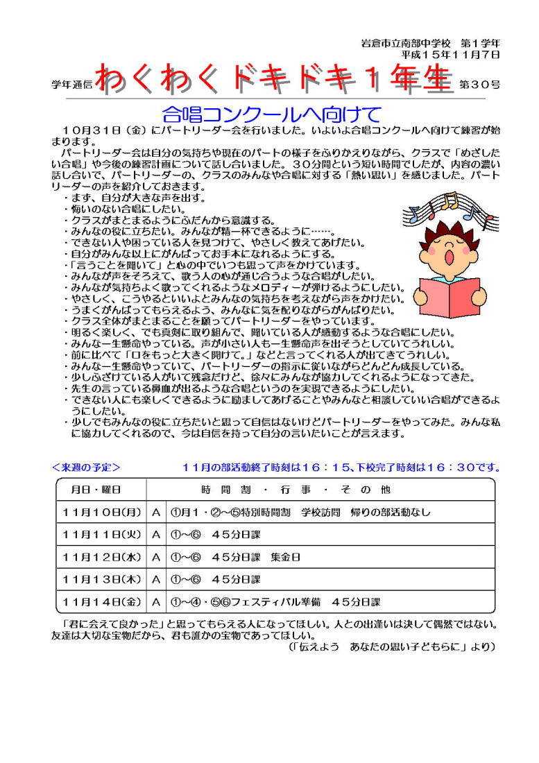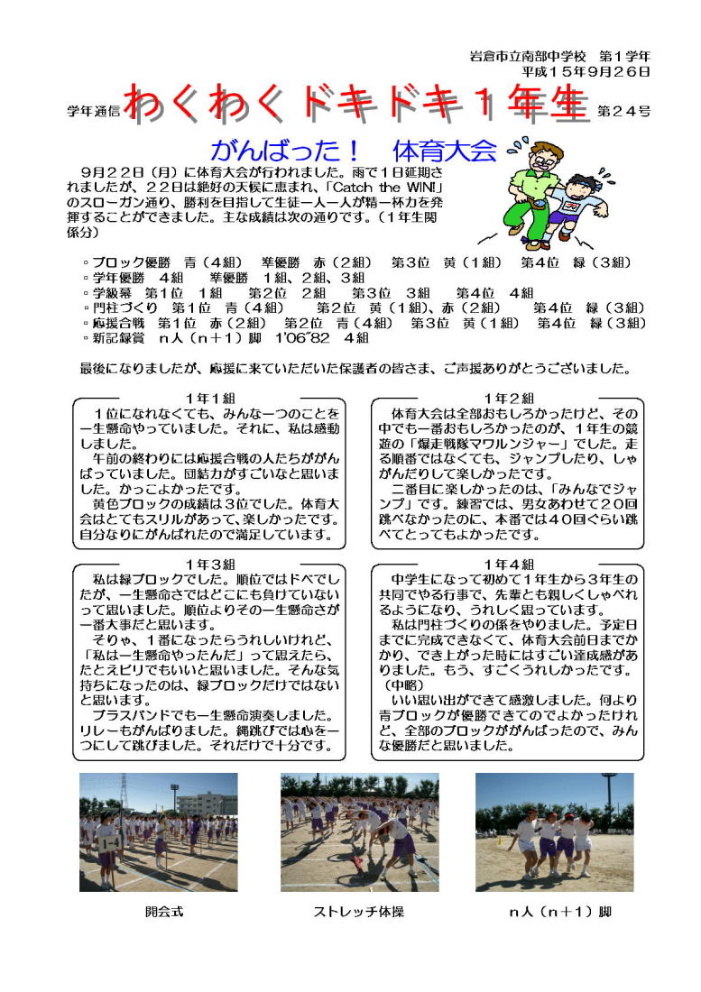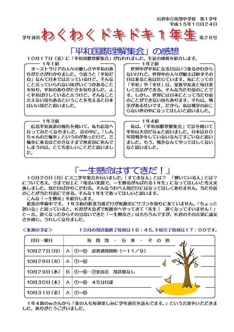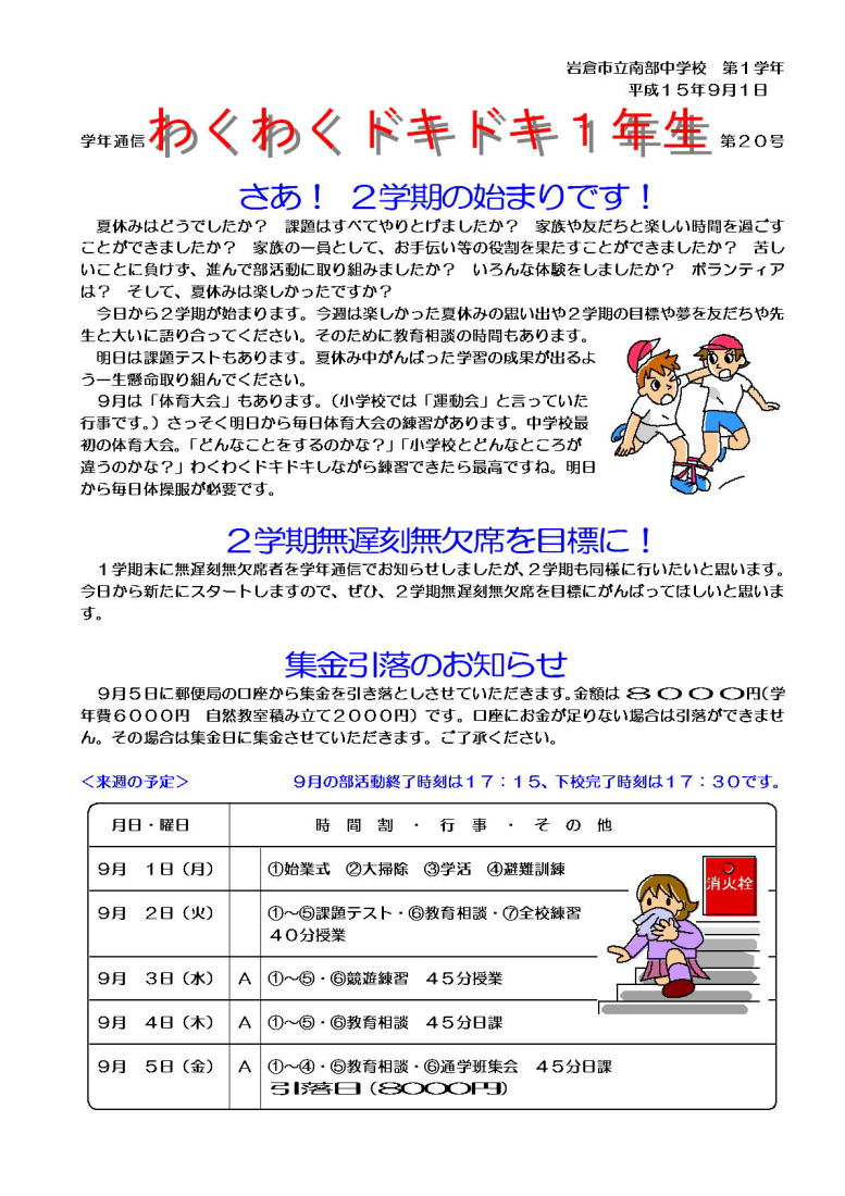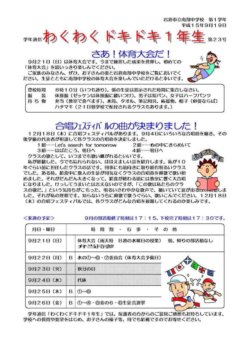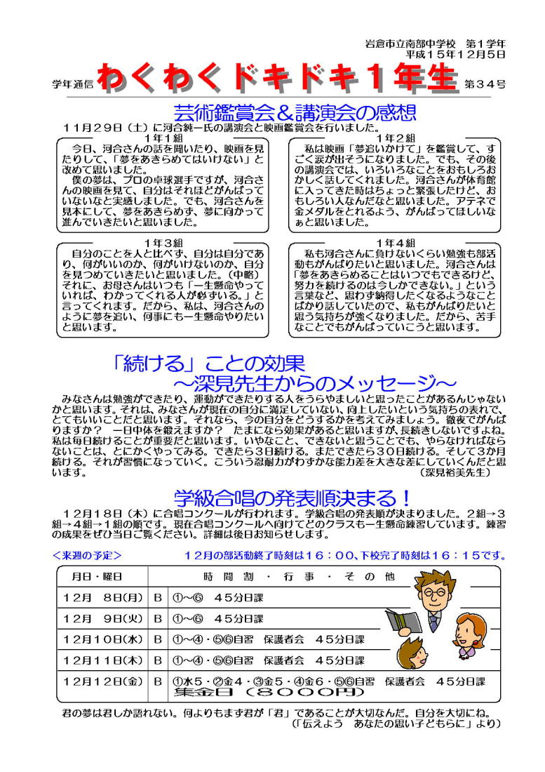 学年通信 1年生