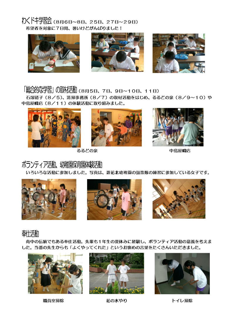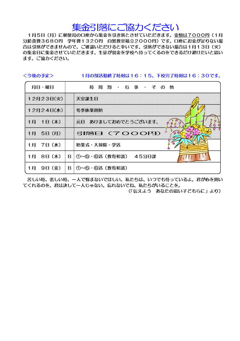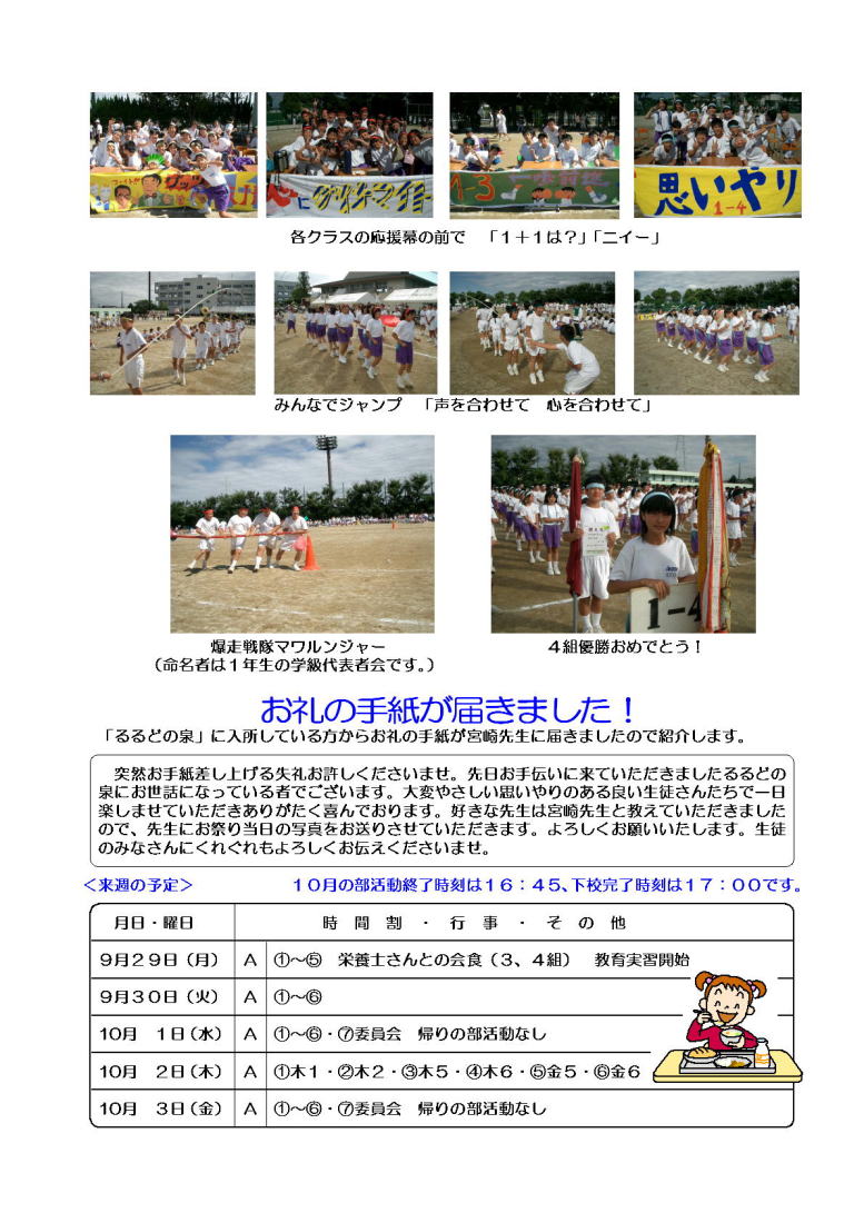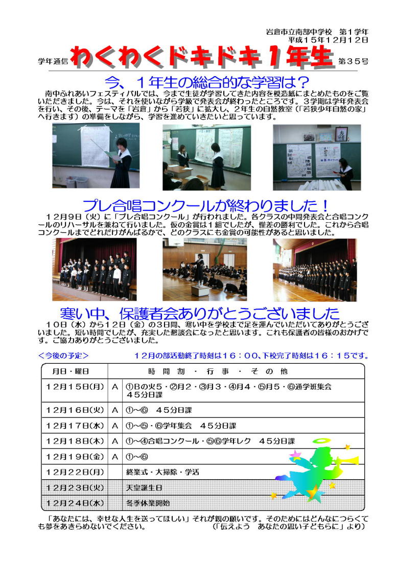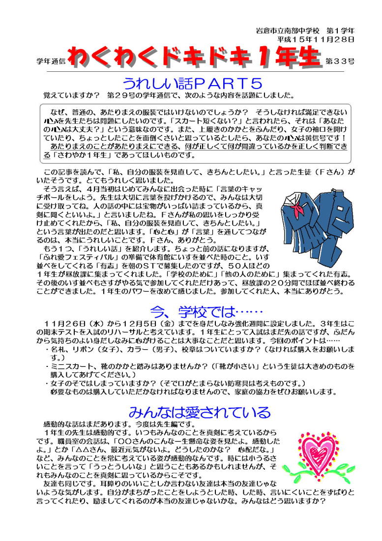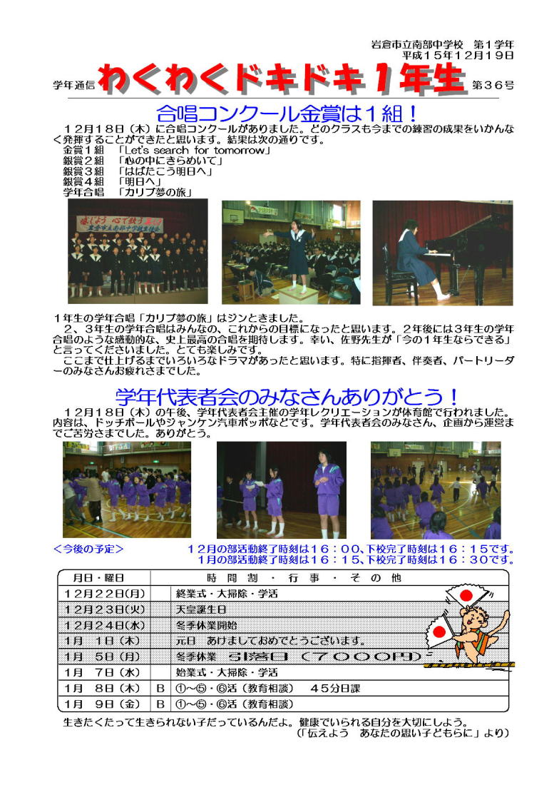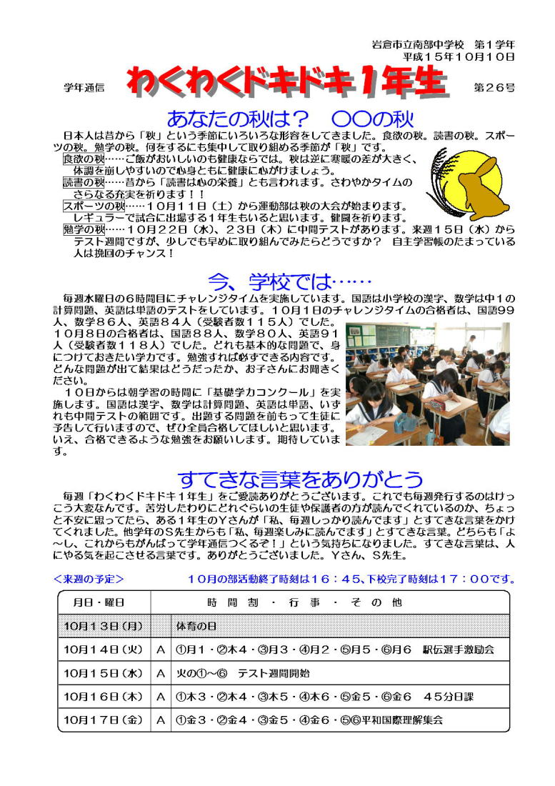 学年通信 1年生